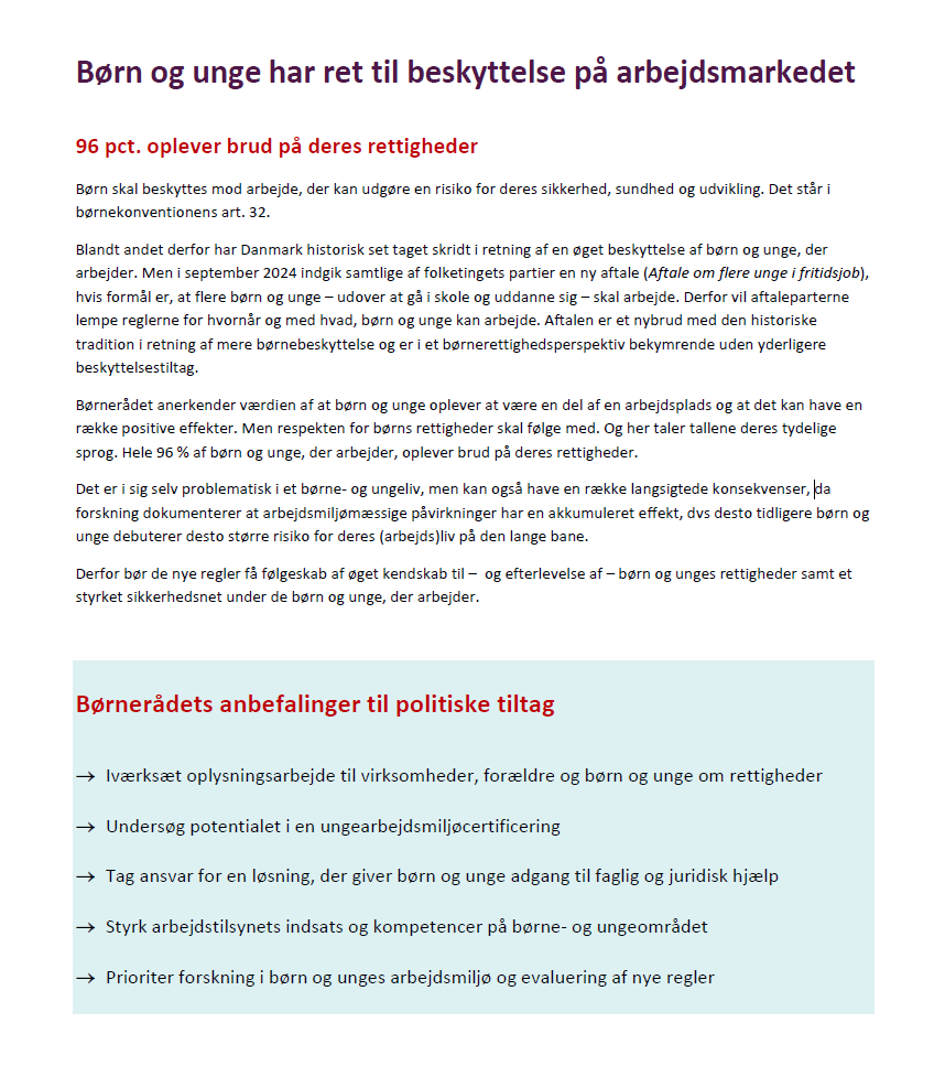 Børn og unge har ret til beskyttelse på arbejdsmarkedet